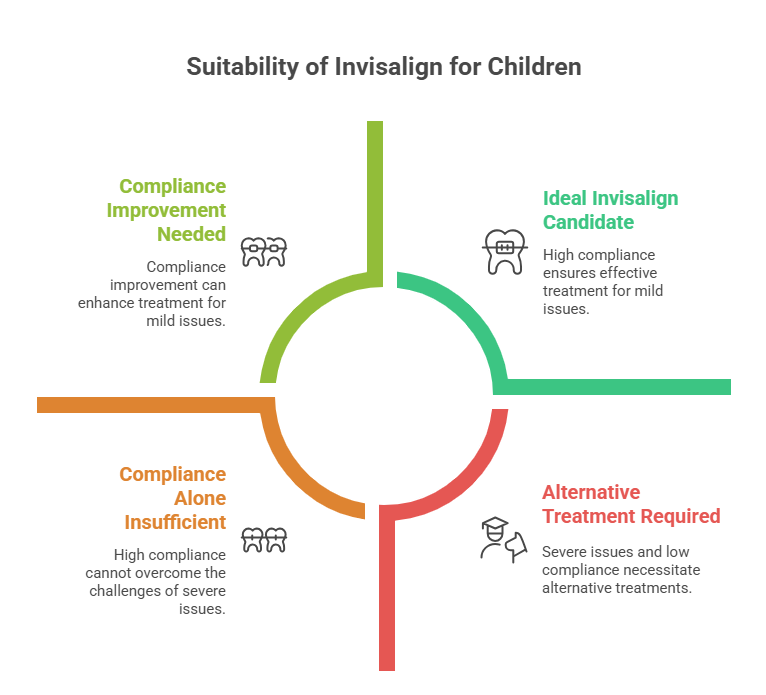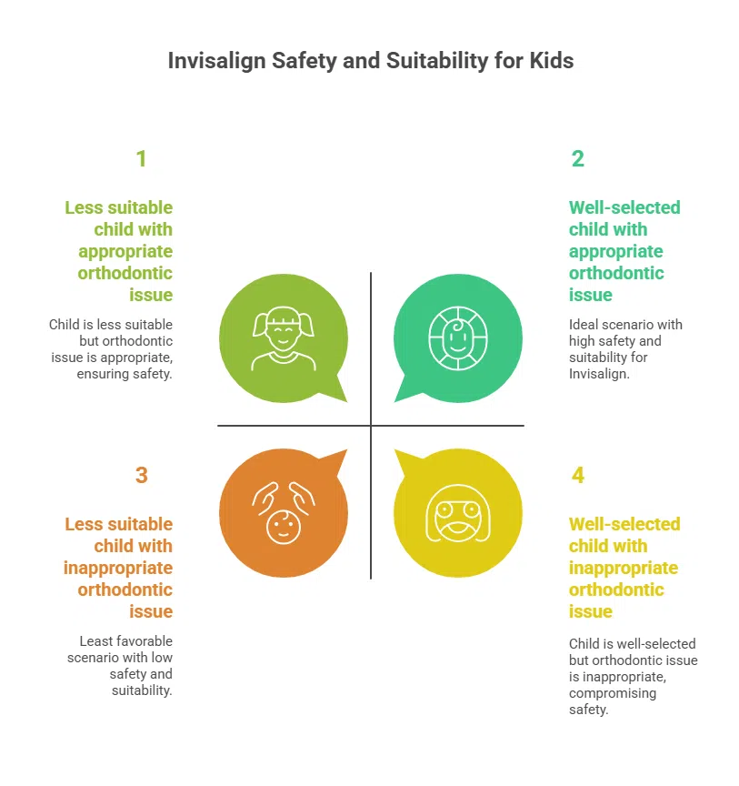 A: Not always. Mild-to-moderate issues are good candidates; however severe cases (jaw discrepancies, complex moves) may require braces or other appliances for safety and predictability. - Q: What role does compliance play in the safety of Invisalign for kids?
