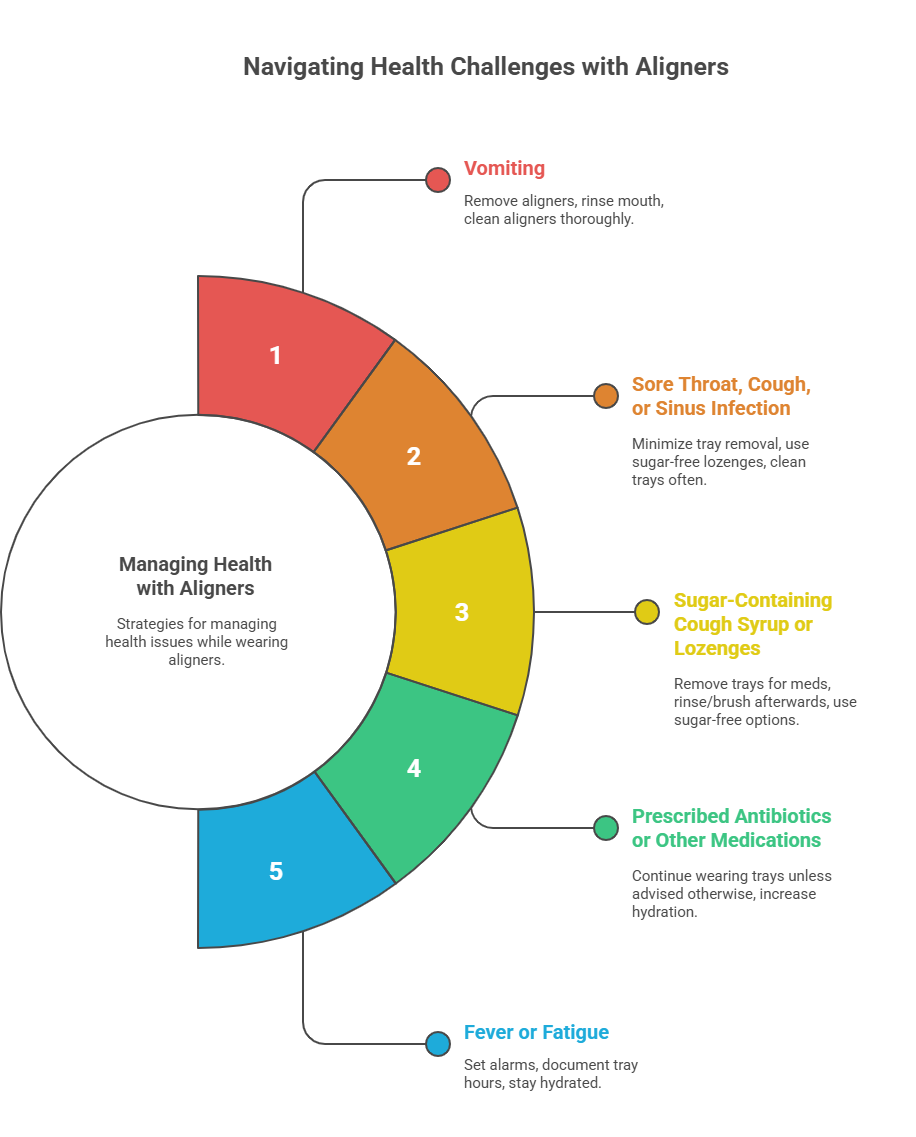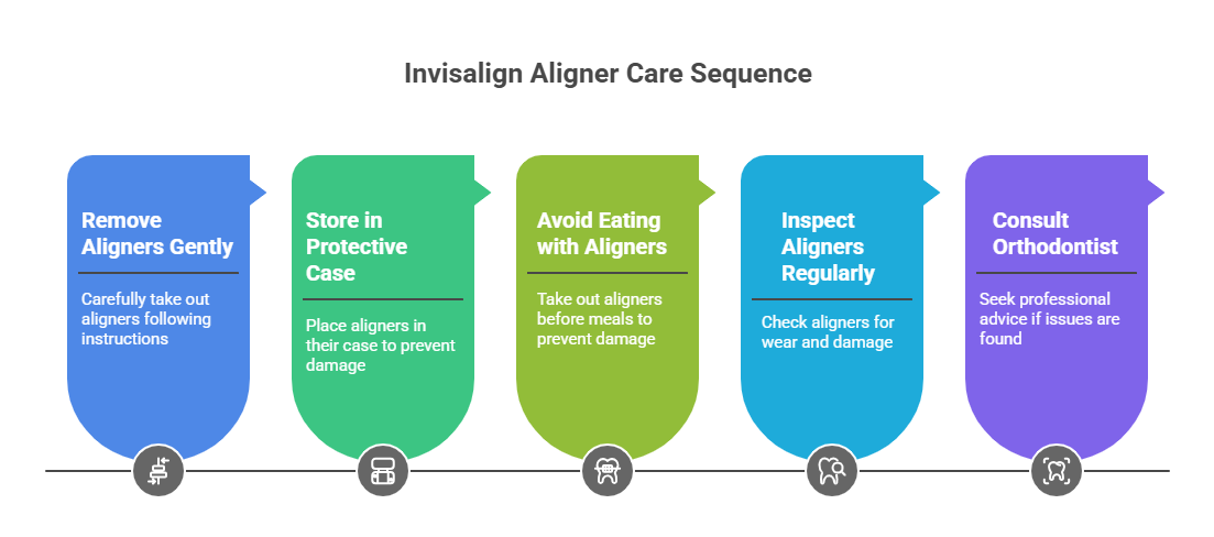 • Avoid Eating with Aligners In: Remove aligners before eating to prevent damage from biting down on hard foods.