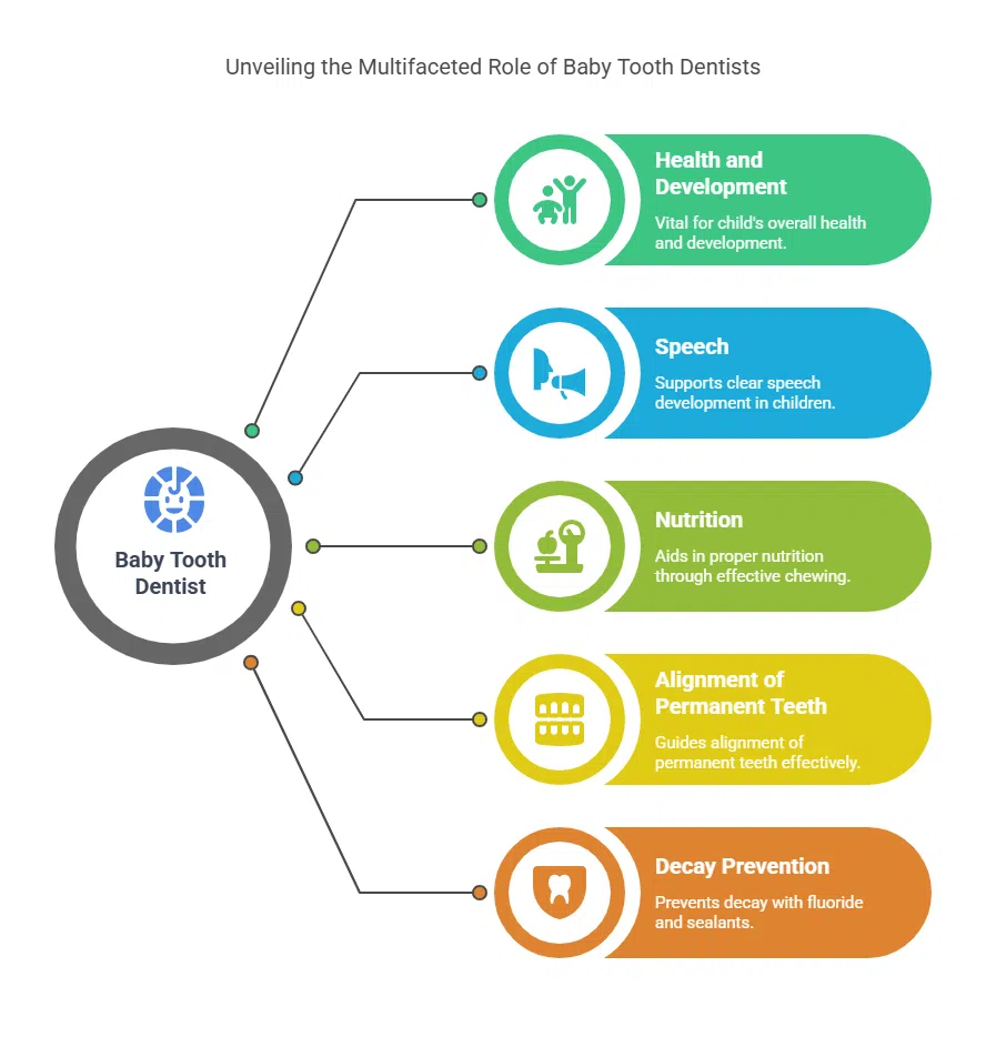 A pediatric dentist specializes in the unique dental needs of infants, toddlers, children, and adolescents. These professionals undergo additional training to manage child-specific oral health issues and create a welcoming, kid-friendly environment. Whether you’re looking for a kids dentist, a dentist for toddlers, or a baby tooth dentist, pediatric dentists are equipped to provide specialized care tailored to young patients.