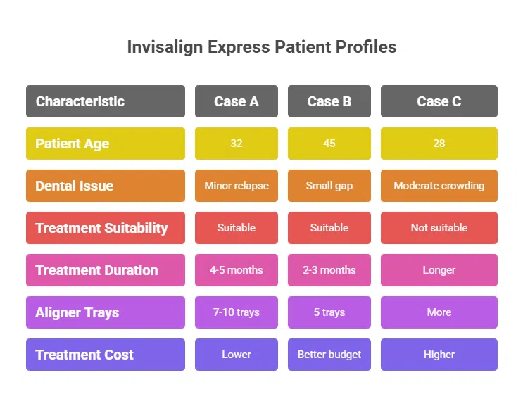 Here are typical patient profiles for Invisalign Express at Comfort Dental Weymouth: