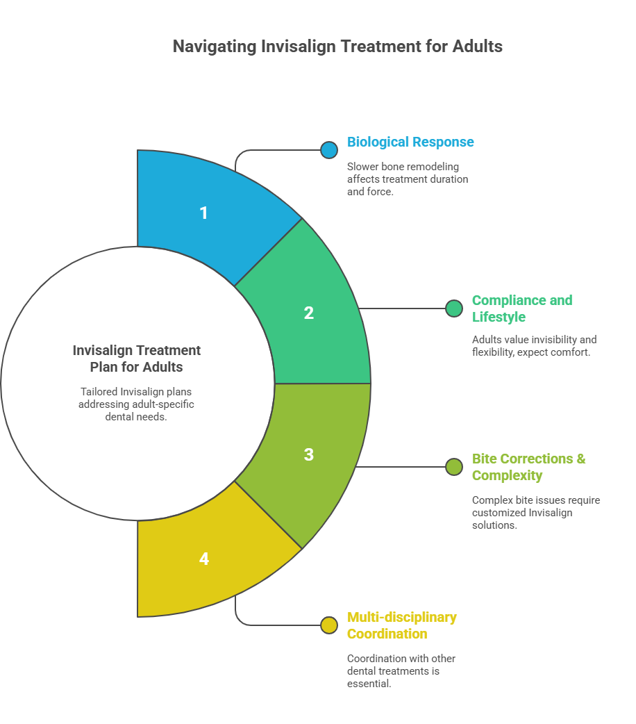 - Adult bone remodeling tends to be slower than in teens, which may slightly extend treatment time or require more careful force management.