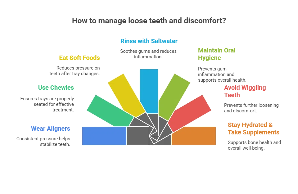Wear aligners as prescribed and maintain strong oral hygiene. - Will my teeth feel loose forever?